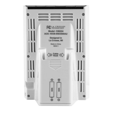 Bright, dynamic LCD screen illuminates this bedside alarm and is power packed with features. Displaying manual time, full calendar view, and shows you the room temperature with humidity. So many options, such as: dual USB charging ports (adapter use only), crescendo alarm with multiple settings, and nap timer. Ready for a power snooze. Set the Nap Timer to count down from 120 minutes to 10 (default) for a quick sleep. Greets you a Good Morning or Buenos Dias when you exit the snoozed alarm and indicates a low/weak battery.